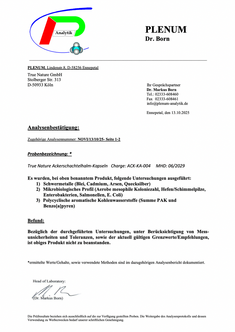 - Jede Charge laborgeprüft* (siehe Analysenzertifikat )