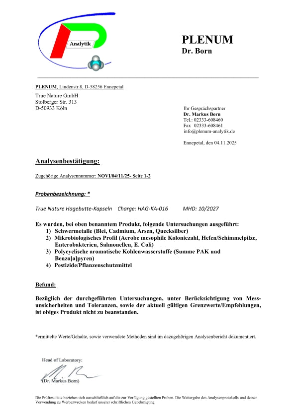 Hagebutten sind die Früchte der Wildrosen. Sie sind in weiten Teilen Europas heimisch. Unsere gedeihen in Bulgarien unter besten ökologischen Bedingungen, bevor sie schonend zu Pulver verarbeitet werden. Trotz ansprungsvoller Qualitäts-Standards vor Ort, wird jede Charge von einem unabhängigen Labor in Deutschland auf Reinheit zertifiziert*. Der Rohstoff wird in Deutschland gemäß ISO- und HACCP-Standards abgefüllt.